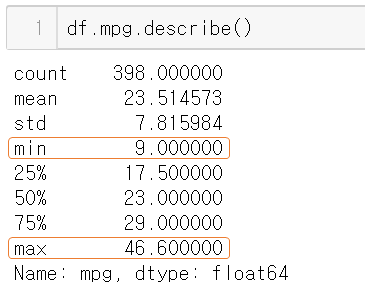 지금 보면 최솟값이 9이고 최댓값은 46이다.