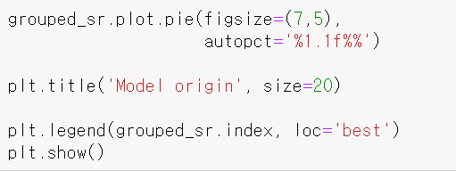 위 데이터프레임에서 origin 컬럼으로 그룹핑 한다.