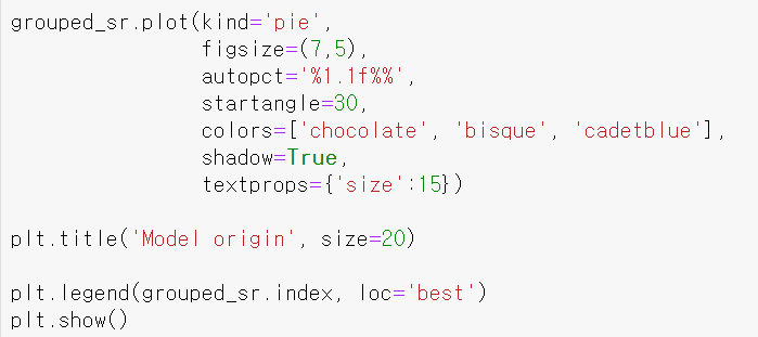 이제 이 grouped_sr을 이용해 파이 차트를 그릴 수 있다.