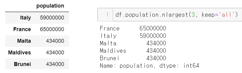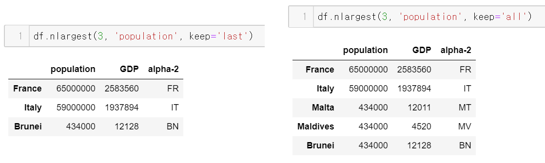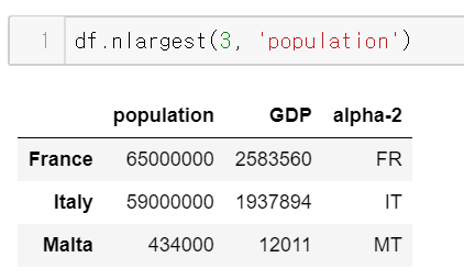참조 : https://pandas.pydata.org/pandas-docs/stable/reference/api/pandas.DataFrame.nlargest.html