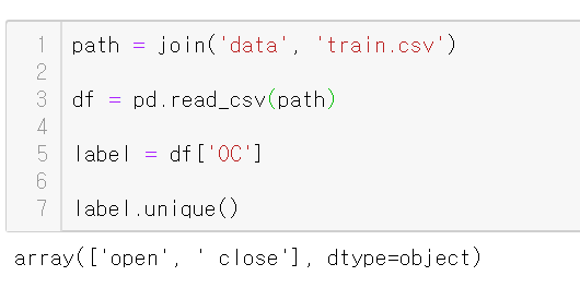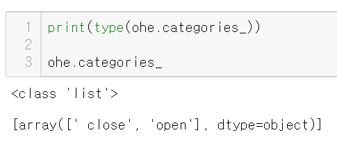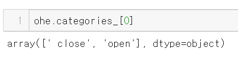 원핫인코딩된 배열의 순서는 close와 open이다.