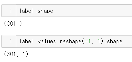 reshape을 이용해 (301, 1) 형태로 바꿔준다.
