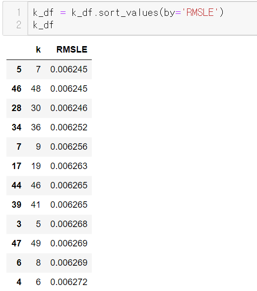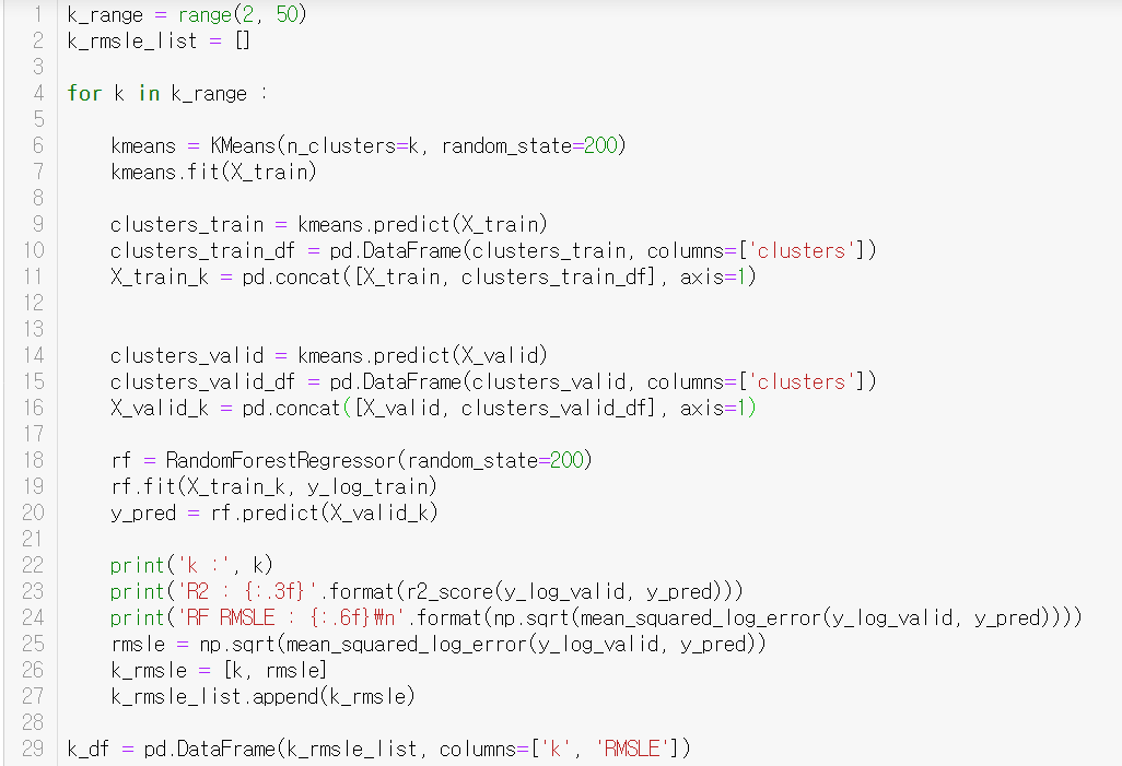 RMSLE가 가장 낮게 나온 군집의 개수 K는 7이다.