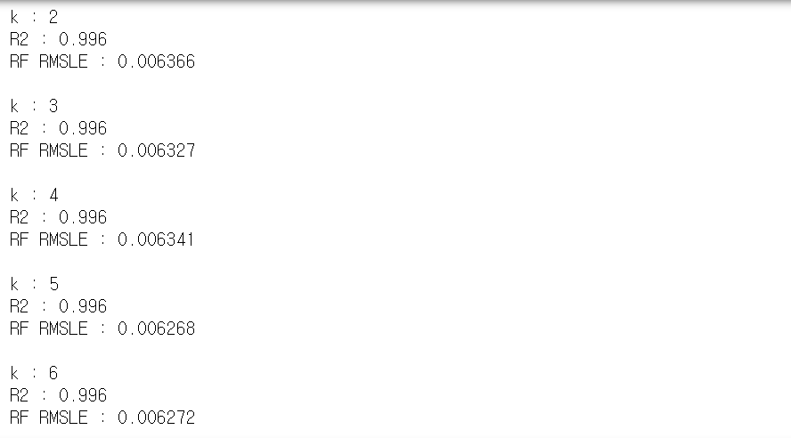 군집을 feature로 추가한 데이터의 RMSLE가(0.006244) 더 낮게 나왔다.