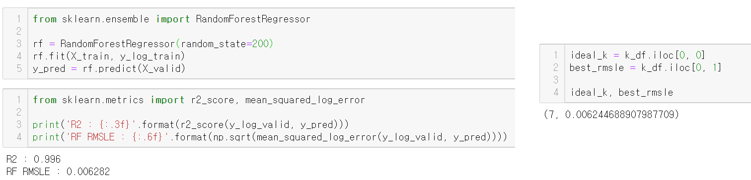 평가 지표는 R-squared와 RMSLE를 이용한다.